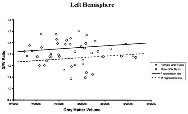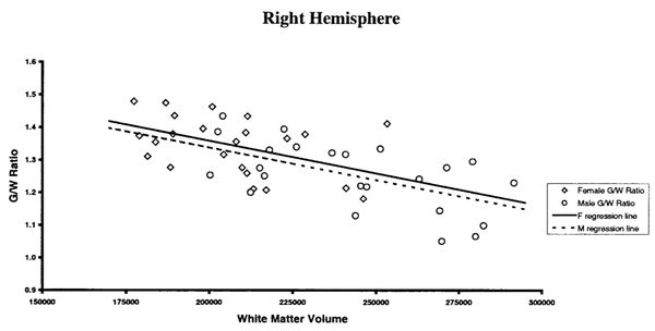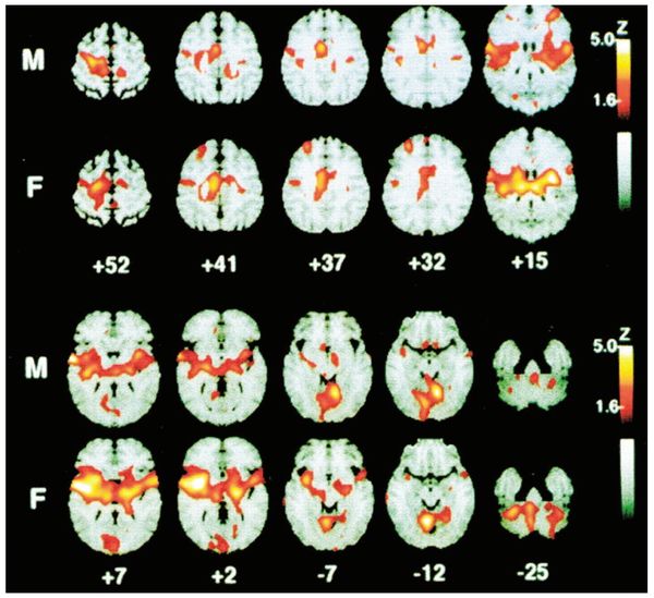 從結構層面上說,男性的腦部總體積較大,但灰質體的平均體積則女性較高,而白質體的體積亦是輕微較男性高。