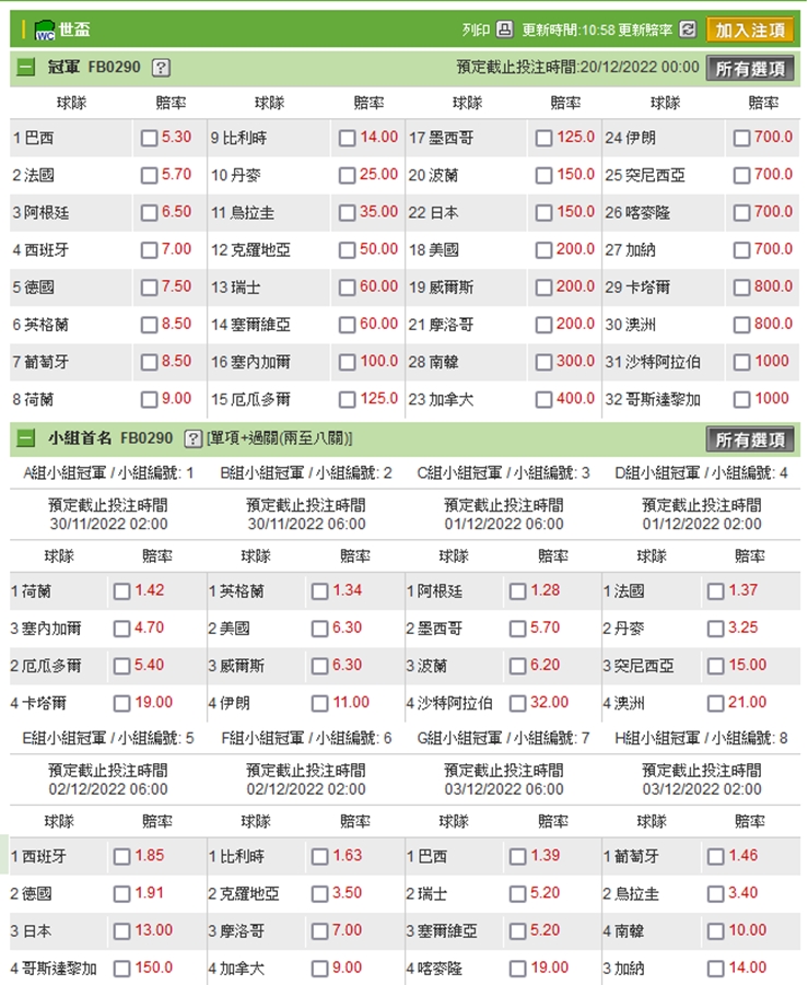 更甚是,隨著馬會不打自招承認了九成「客人」網上投注,我們不難發現,筆者撰稿當日,已經有世界盃的冠軍和小組首名可以開盤,甚至有單項和過關的選項。每場場事也有一大堆不同的賭法和盤口,最重要的是只要進入足智彩的網址,這些基本上就是一堆公開資料,任何人也可以瀏覽。